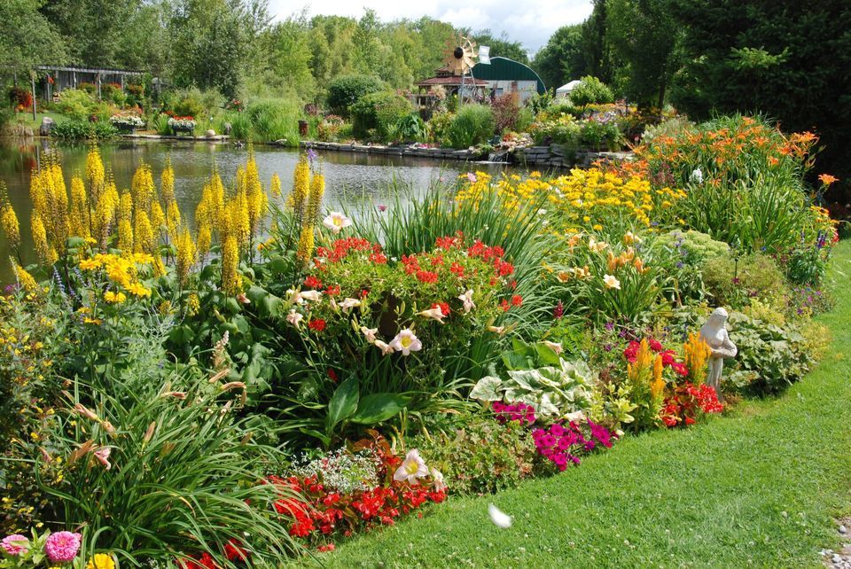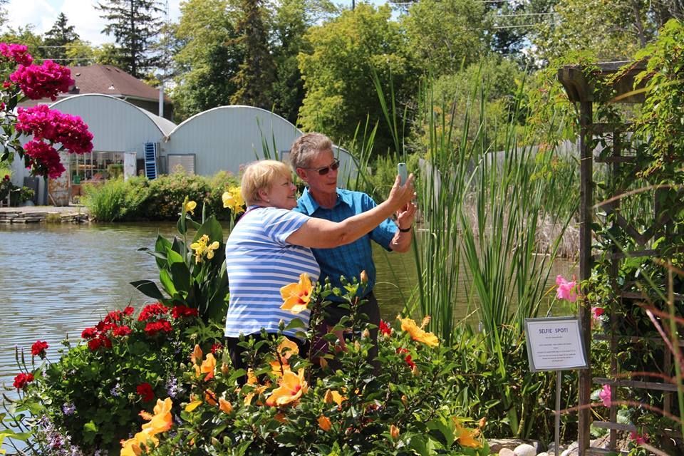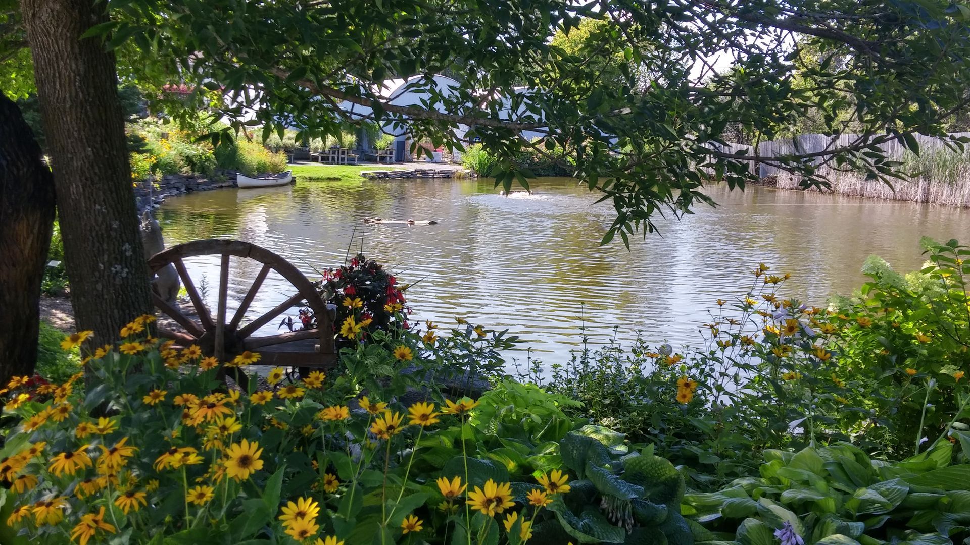 Our award-winning Display Garden is open and free to wander during our business hours. View perennials and annuals in stages of growth in the garden beds surrounding the natural pond and cascading waterfall. Zone appropriate perennial species will include hydrangeas, ornamental grasses, evergreen trees and small flowering shrubs, iris, daylilies, hosta, rudbeckia, echinacea, heuchera, spring bulbs and hundreds more. Annuals are generously planted with perennials, to showcase a garden looking best with the co-mingling of the two. Annuals you will see include: begonias, verbena, alyssum, sunpatiens, coleus, euphorbia plus foliage and many vines. The cedar gazebo is surrounded by unique, large sized container plantings and the designs change each year, often more spectacular than the last! Many benches and seats are tucked here and there for lounging and a place to sit, visit and quietly enjoy the surrounding beauty.