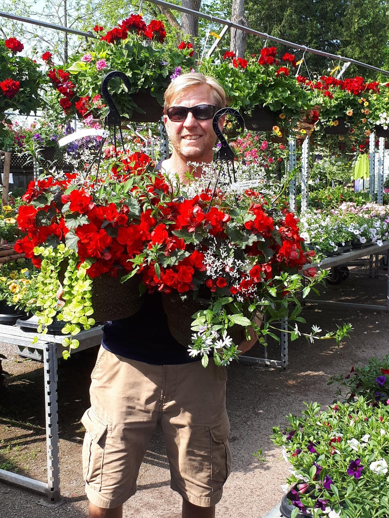 In 2001 Vikki left her teaching career in Belleville, moved back to Peterborough with husband and two children and became the General Manager. She expanded the business adding seasonal workshops and becoming the face of Griffin’s Greenhouses at speaking engagements throughout the province. In 2006 Kyle chose gardening over a career in Photojournalism and he became the Greenhouse Manager, streamlining many processes and adding to the award winning Display Garden. Robin, Kyle’s wife, joined in 2020 to manage the Barn Store and showcase her merchandising skills while Darryl, Vikki’s husband, became our Office Manager, after his retirement from a career in Education. Now the grandchildren, Ben (24), Olivia (21), Jake (20) and Mitchell (18) help out at school break times – a true family business!
