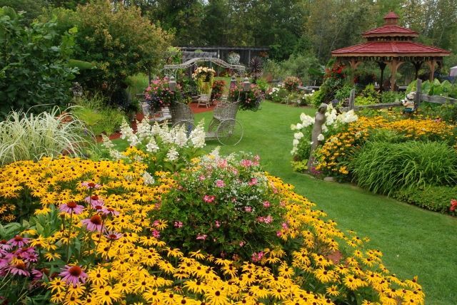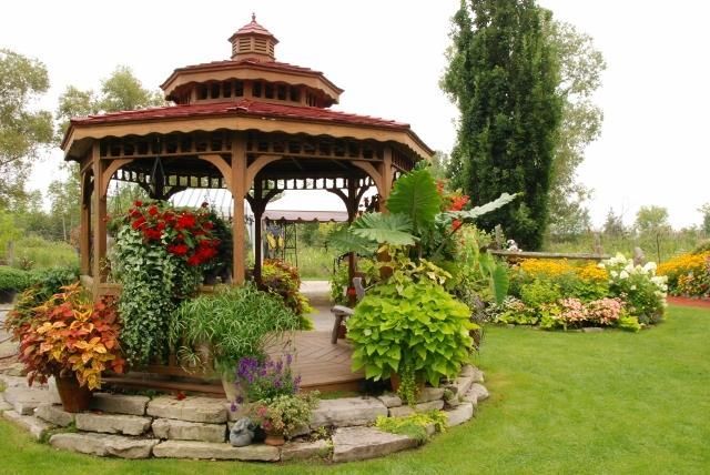 What will you see? We have planted hundreds of varieties of zone appropriate perennials, often in drifts or multiples echoed throughout the spaces, for cohesiveness. Annuals are dotted throughout, for constant colour. Our cedar clad gazebo (a cool place to sit and take it all in) is surrounded by unique container plantings. It’s a INSPIRATION for your senses!